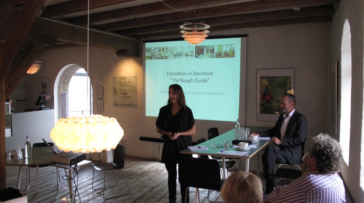 奧爾胡斯大學(xué)藝術(shù)學(xué)院教育系Malou Juelskjaar 教授為大家介紹丹麥的教育體制
