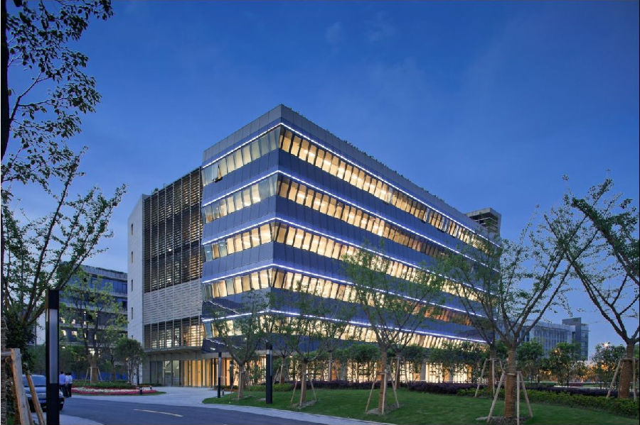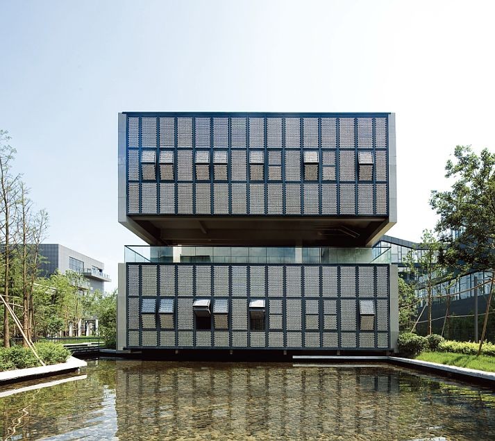 錢(qián)平:同樣非常注重綠色建筑設(shè)計(jì),認(rèn)為新材料與新技術(shù)的結(jié)合才可創(chuàng)新建筑。除了熟知的水立方和天津游輪母港,虹橋產(chǎn)業(yè)樓地塊的1#和2#就是一個(gè)典型案例,光電幕墻的運(yùn)用成為一大亮點(diǎn)。對(duì)1#立面材料進(jìn)行重新梳理,加入光電幕墻。對(duì)2#的立面重新設(shè)計(jì),將光電幕墻與普通窗結(jié)合成一體,并加入透氣的腔體,同時(shí)結(jié)合活動(dòng)遮陽(yáng)、中遮陽(yáng)外窗等。最終的1#和2#節(jié)能率提高至65%,一個(gè)合理的新技術(shù)和合理的新材料建造一個(gè)新的建筑。