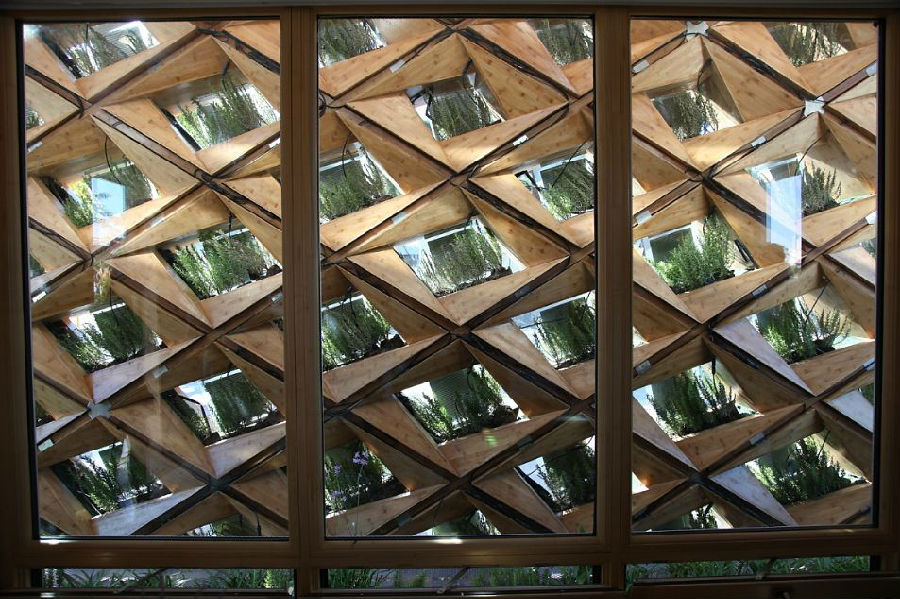袁烽:一直致力于材料的多維物質(zhì)性表達(dá)。以可樂(lè)瓶及其自身形成的空腔作為建筑的一層外皮,可開(kāi)啟通風(fēng)、隔熱、排出雨水;按絲綢紋理進(jìn)行數(shù)字模擬,以混凝土砌塊堆砌形成絲綢般的墻面;茶室樓梯以水泥塑造出空間維度變化;諾華制藥地下室空間設(shè)計(jì)中,運(yùn)用混凝土對(duì)傳統(tǒng)中國(guó)山水畫(huà)進(jìn)行數(shù)字化呈現(xiàn);在太陽(yáng)能住宅競(jìng)賽中,以竹木結(jié)構(gòu)為骨架,內(nèi)部結(jié)合保溫、通風(fēng)、水和綠化系統(tǒng)、遮陽(yáng)系統(tǒng),同樣實(shí)現(xiàn)了多重目標(biāo)。通過(guò)數(shù)字化設(shè)計(jì)和加工,可以變傳統(tǒng)材料為多維材料,從而塑造出多維空間。