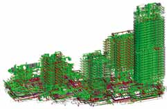 32.8萬m 2,比廣州歌劇院大4倍多。作為開發(fā)商,我們要算經(jīng)濟帳,所以建設(shè)時間不能拖得太長,計劃用36個月建成。時間其實非常緊張,但因為采用了BIM系統(tǒng),所以在計劃時間內(nèi)如期建成了。給大家透露一下我們的工程成本,6 300元/m 2,擁有如此多雙曲面的建筑,僅用這么低的成本就做下來實在不可思議。在這之前我們做的直上直下的建筑成本大概也要1萬元/m 2左右。那么我們的成本是如何降低的呢?舉個例子,在沒有用BIM施工之前,我們每建一個項目,像三里屯SOHO,建完之后專門有一個20多人的隊伍,叫打孔隊,在設(shè)計不完善的地方打個洞讓管子下去和上來,而銀河SOHO這個項目僅應(yīng)用BIM就在模型中找到了4 000多個碰撞和錯誤,防患于未然,大大減少了返工,節(jié)約了工期,這就是BIM給我們帶來的幫助。