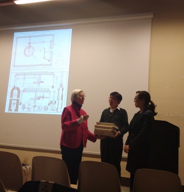 馬克斯普朗克藝術(shù)史研究所副所長伊麗莎白•基芬(Elisabeth KIEVEN)博士接過清城睿現(xiàn)數(shù)字科技研究院副院長殷麗娜贈送的圓明園研究專著。