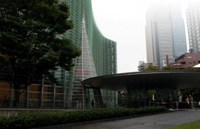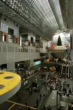 其獨(dú)特之處在于設(shè)計(jì)師結(jié)合辦公樓的娛樂休息空間,創(chuàng)造了一個(gè)有活力的浮游領(lǐng)域,超高層大樓頂部是一個(gè)巨大的圓孔,以減小壓力,光線由此進(jìn)入,人們可以通過它遙望太空,空中露臺(tái)、空中花園、空中自動(dòng)扶梯等把兩個(gè)超高層建筑結(jié)合在一起,形成令人振奮的空間構(gòu)成。同樣令人振奮的還有京都火車站這個(gè)項(xiàng)目,我相信原廣司再設(shè)計(jì)之初也苦惱于太多的限制條件,其中一條就是車站的總占地被限制在總面積的二十分之一中,而設(shè)計(jì)師的創(chuàng)造靈感就是來自于這一矛盾的解決中,他設(shè)想了一個(gè)地區(qū)性的社居場所,于是這個(gè)建筑帶有一個(gè)巨大的鋼結(jié)構(gòu)玻璃頂棚,下面是尺度巨大的漫無止境的大臺(tái)階,我相信這種奇特的體驗(yàn)是每一個(gè)到訪者都不能忘懷的。在這個(gè)貫通整個(gè)建筑的群集場所中,游客可以自由地從一個(gè)空間“飄移”到另一個(gè)空間,從底部的車站到商場再到頂部的花園。與原廣司的設(shè)計(jì)這樣用巨大的鋼結(jié)構(gòu)和混凝土來構(gòu)筑這樣鮮明的時(shí)代特征不同,日本另一位大師級(jí)的設(shè)計(jì)師黑川紀(jì)章的日本新國立美術(shù)館就顯的內(nèi)斂得多。