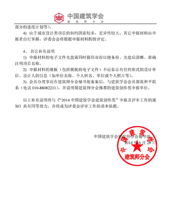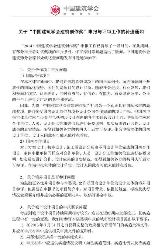 2014中國建筑學(xué)會建筑創(chuàng)作獎申報7月25截止及匯款單位更名通知