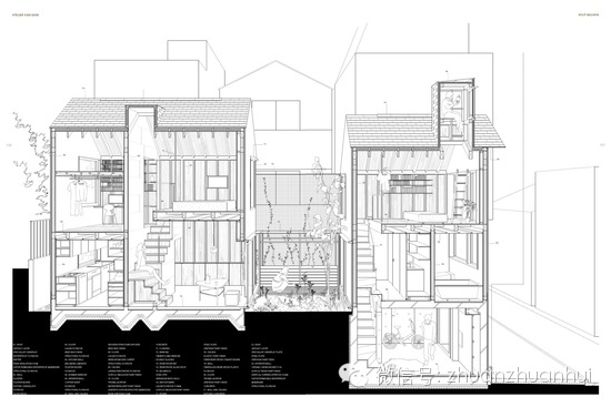 此外,坐落在新宿區(qū)的《Split Machiya》可以說是町屋研究結(jié)果的落實(shí),它由兩棟相同結(jié)構(gòu)的房屋所組成,兩屋間以中庭相連結(jié),為居住空間帶來自然的風(fēng)景及良好的通風(fēng)功能。也許是經(jīng)過特別研究的關(guān)系,這些夾縫里的寵物建筑,在視覺上也可和周圍建筑融和地共存著,達(dá)到有別以往的「內(nèi)外兼顧」。