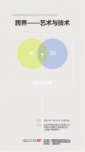 2014年7月25日,CIID2014北京沙龍活動(dòng),將在北京市海淀區(qū)西三環(huán)北路5號(hào)中國(guó)中元國(guó)際工程有限公司1號(hào)樓2樓報(bào)告廳舉行。此次沙龍活動(dòng)圍繞《跨界--藝術(shù)與技術(shù)》的主題而進(jìn)行,與北京的設(shè)計(jì)師們一同暢談設(shè)計(jì),聚焦“跨界”這一文化現(xiàn)象。此次北京沙龍活動(dòng)由中國(guó)建筑學(xué)會(huì)室內(nèi)設(shè)計(jì)分會(huì)(CIID)主辦,中國(guó)中元國(guó)際工程有限公司承辦,《建筑技藝》雜志協(xié)辦。