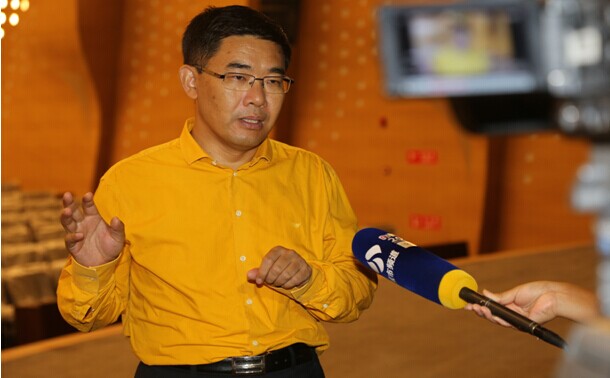 中孚泰董事長譚澤斌在青奧會議中心大劇院接受江蘇衛(wèi)視記者采訪