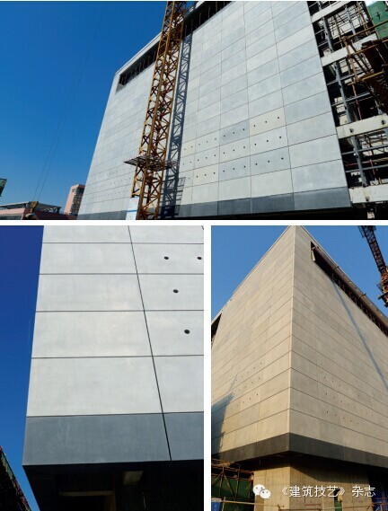 清水混凝土板替代石材、龍骨、圍護(hù)墻,安裝簡(jiǎn)便,經(jīng)濟(jì)性好