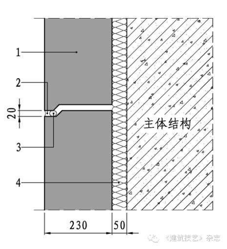 本項(xiàng)目建筑構(gòu)造設(shè)計(jì)主要包括防水、防火、保溫等,由于混凝土板厚度為230mm,外掛板自身的防水、防火性能優(yōu)越,關(guān)鍵是做好接縫防水構(gòu)造、節(jié)點(diǎn)防火和層間防火構(gòu)造,具體做法如下: