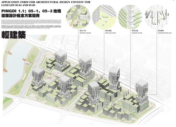 設(shè)計(jì)說明:作為深圳實(shí)行低碳發(fā)展的旗艦項(xiàng)目,坪地國際低碳城正處于從設(shè)想到實(shí)踐的戰(zhàn)略性階段。奧雅納從實(shí)施可行性、全周期公眾參與、以及低碳生活方式等關(guān)鍵議題入手,針對不同單元類型的特點(diǎn),提供了相應(yīng)的產(chǎn)業(yè)發(fā)展、開發(fā)運(yùn)營、公眾參與、低沖擊開發(fā)策略的最優(yōu)組合方案和設(shè)計(jì)意向,旨在為低碳城的可持續(xù)發(fā)展提供綜合解決方案。