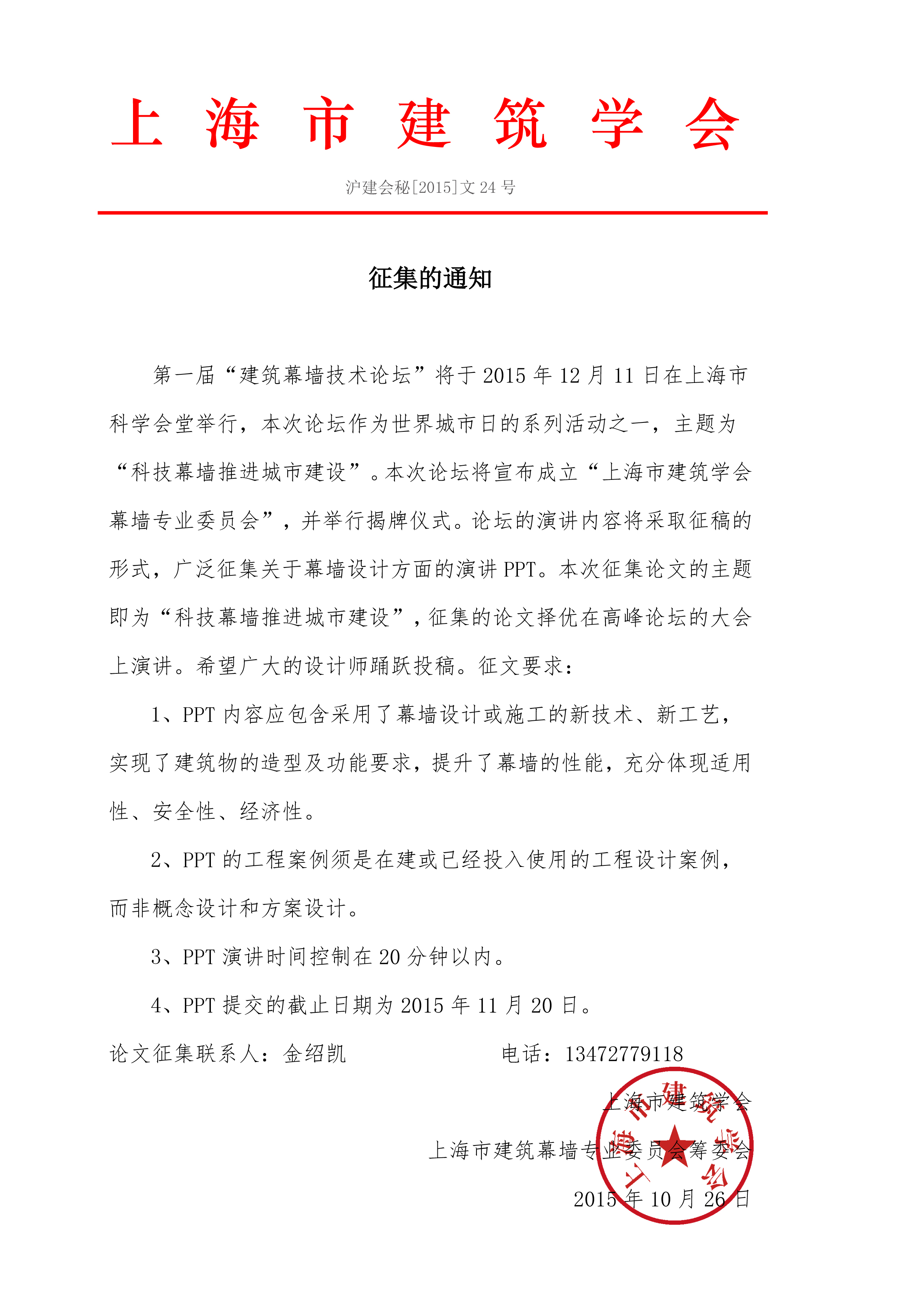 “科技幕墻高峰論壇”暨“上海市建筑學(xué)會幕墻專業(yè)委員會成立大會”征集演講ppt