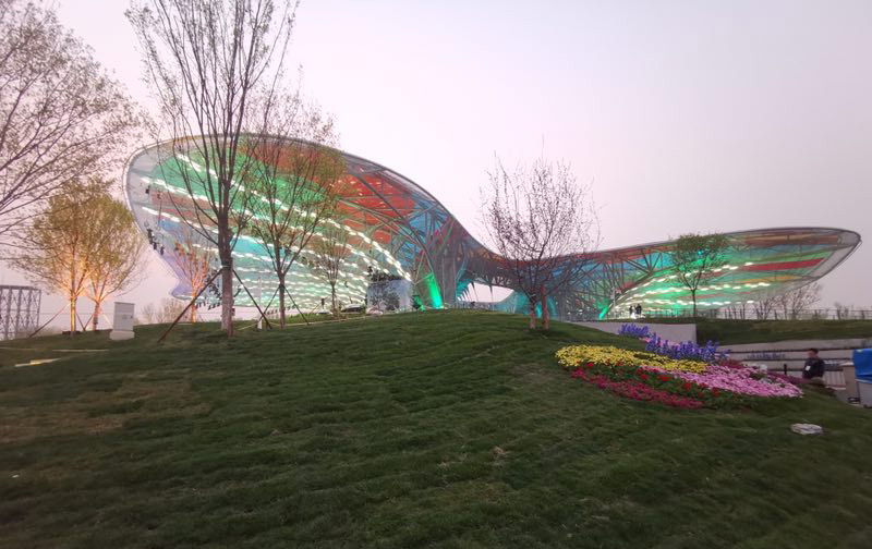 建筑宛如一只彩蝶駐足在媯湖之濱,更有“如云縈繞山間,如溪穿梭林間”的一色臺(tái)、華夏四方名花盛放的九州花境、翠影紅霞映朝日的千翠池、“花傘彩蔭濃聚,萬國(guó)佳客舉杯”的絲路花語;正可謂永寧高閣攬勝景、天田媯汭蝶飛舞,北京世園會(huì)園區(qū)將以其得天獨(dú)厚的自然景觀及獨(dú)具匠心的人工設(shè)計(jì),使游客寄情山水園藝之中而流連忘返。它有一大兩小半室外劇場(chǎng),將作為北京世園會(huì)開閉幕式的主會(huì)場(chǎng)迎接四海賓朋,并承擔(dān)會(huì)期各類大規(guī)模主題展演等大型集會(huì)活動(dòng)。